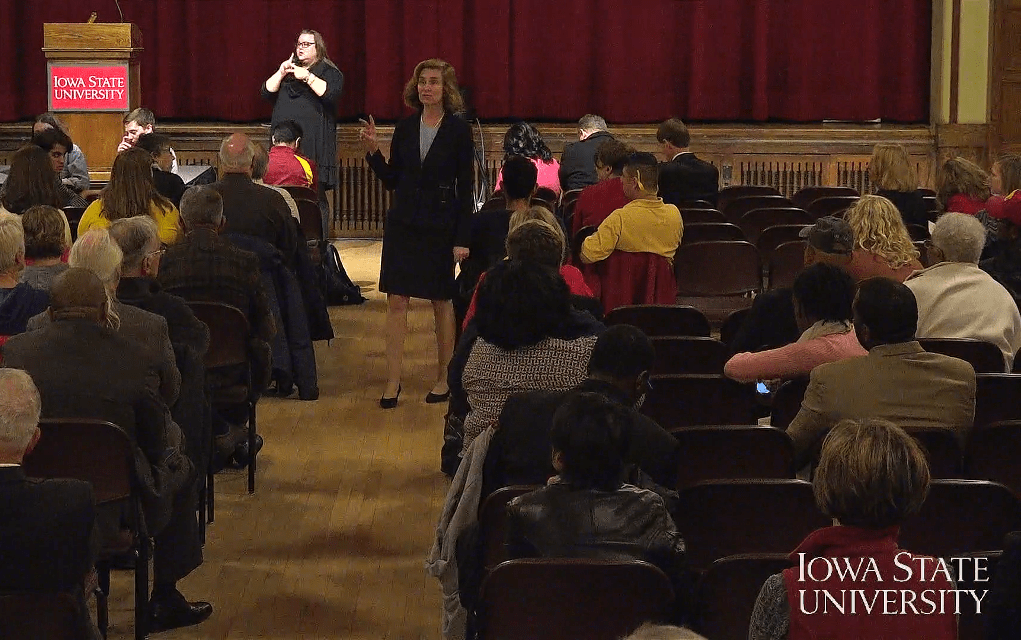 In response, Whitten said that “Iowa State was one of the pioneers in diversity,” specifically mentioning the botanist George Washington Carver, who in 1891 became the college’s first African American student (because campus housing was segregated at the time, Carver lived with the family of Henry Wallace). “The climate and culture you create has to also be accompanied by discrete action to ensure that everyone understands that you’re working at a place, and you’re living in a place, that sincerely values different perspectives,” she said, adding that the university needed to take a “proactive” approach to diversity problems through a continuous dialogue instead of just reacting to incidents like the student mentioned after they occur.