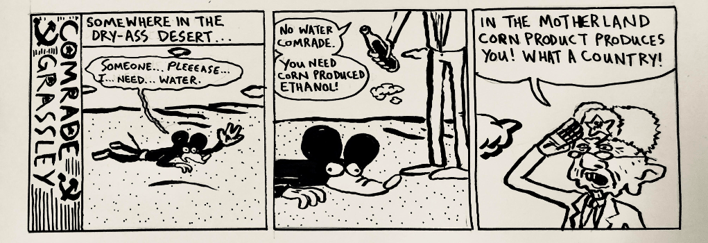 Sam Locke Ward is an artist and lifelong Iowan. As a cartoonist and musician he has a created a fairly large amount of DIY records and comic zines as well as the ongoing comic strip Futile Wrath for Little Village magazine. Charles Grassley became a senator one year before he was born in 1982.
