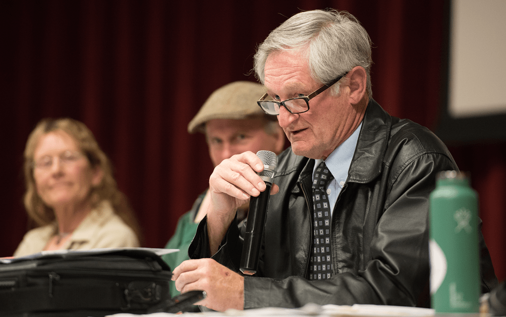 Puntenney referred to two of his fellow panelists, former state lawmaker-turned-environmental activist Ed Fallon* and Boone County Supervisor Tom Foster, as “heroes” for their work opposing the pipeline. In 2006, Fallon played a prominent role in strengthening the state’s laws against eminent domain seizures; last October, Foster and Boone County’s other two supervisors voted to urge the IUB to deny Dakota Access the permit (read more about that, and other local efforts opposing the project, on our timeline).